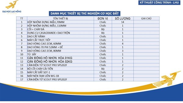 Các môn học trong CTĐT: Cơ học đất, thí nghiệm cơ học đất, thực tập địa chất công trình;