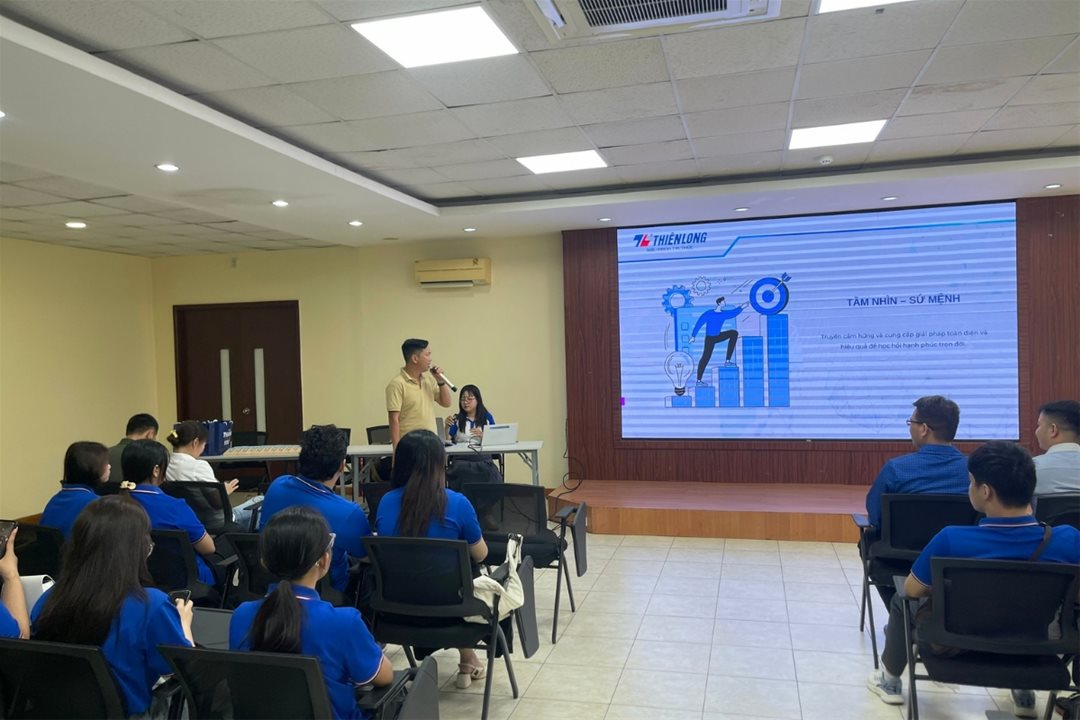 Tại Công ty TNHH SX – TM Thiên Long Long Thành, sinh viên được đại diện doanh nghiệp giới thiệu tổng quan về quá trình hình thành, phát triển, cơ cấu tổ chức và các lĩnh vực hoạt động chính của công ty.