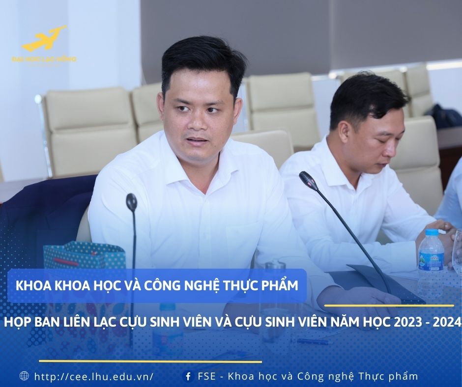 Ngày 16/03/2024 Khoa Khoa học và Công nghệ thực phẩm đã tổ chức họp Ban liên lạc Cựu sinh viên và các Cựu sinh của Khoa tại phòng họp, cơ sở 1, Trường Đại Học Lạc Hồng. Buổi họp mặt diễn ra trong không khí ấm áp và nhiều cảm xúc với sự tham gia của các Thầy, Cô và các bạn Cựu sinh viên các khóa.