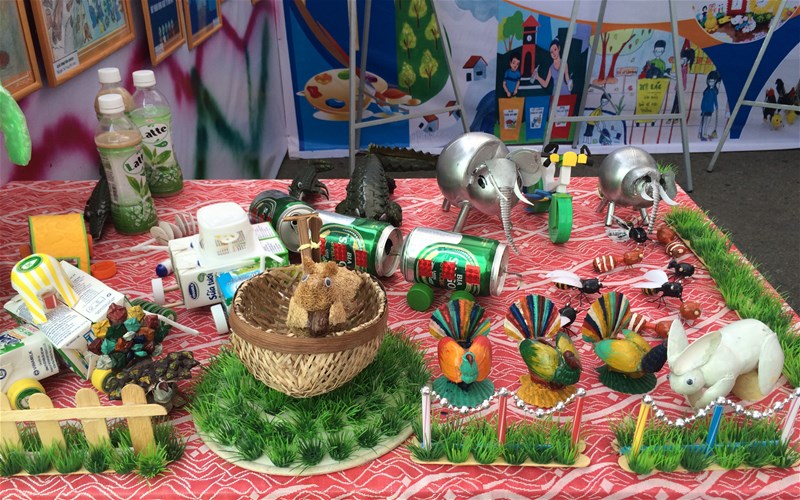 Students from the Faculty of Chemical and Environmental Engineering at Lac Hong University joined in spreading the message of “recycling, saving, and protecting the environment” through designs made from nylon, scrap paper, and more