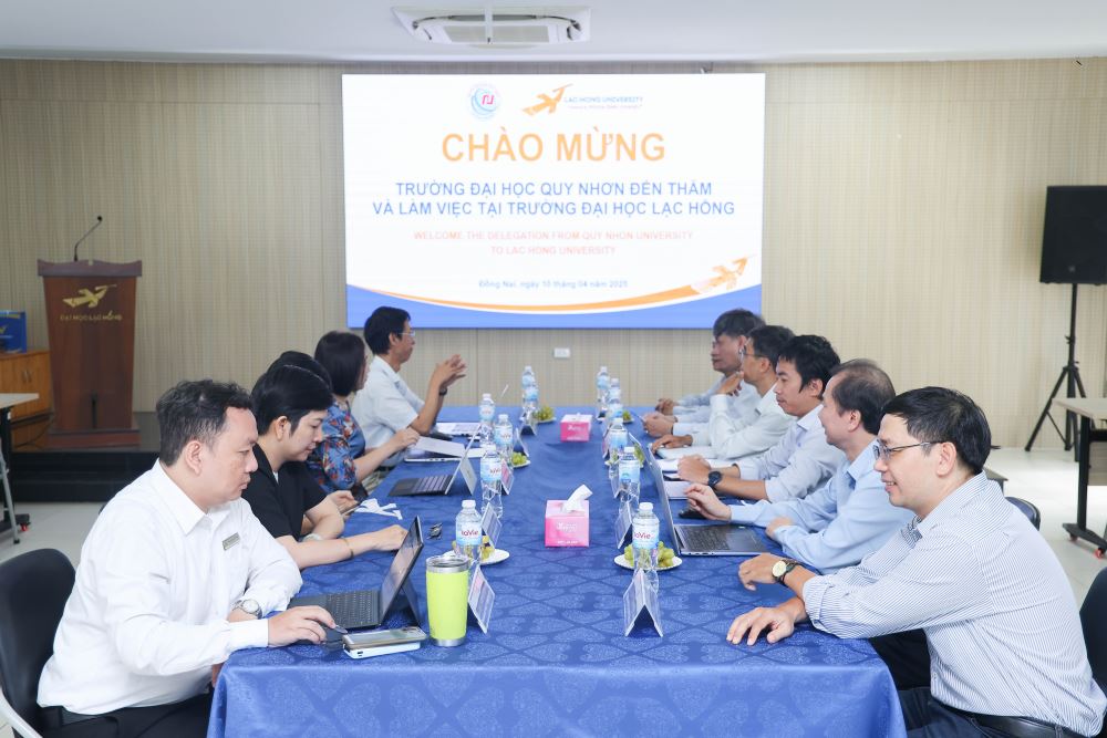[Bien Hoa, Dong Nai] – On the morning of April 10, 2025, Lac Hong University (LHU) had the honor of welcoming a delegation from Quy Nhon University (QNU) for a formal visit and working session. This event marked a significant milestone in fostering collaboration, promoting exchange, and sharing experiences between two prestigious higher education institutions in Vietnam.