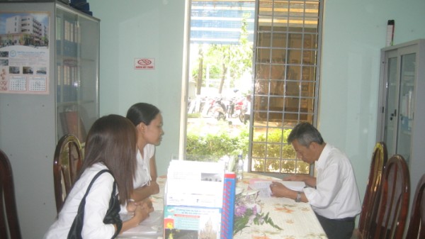 Ông Phan Quốc Hanh (người ngồi bên trài) đang xem lại hồ sơ của các ứng viên