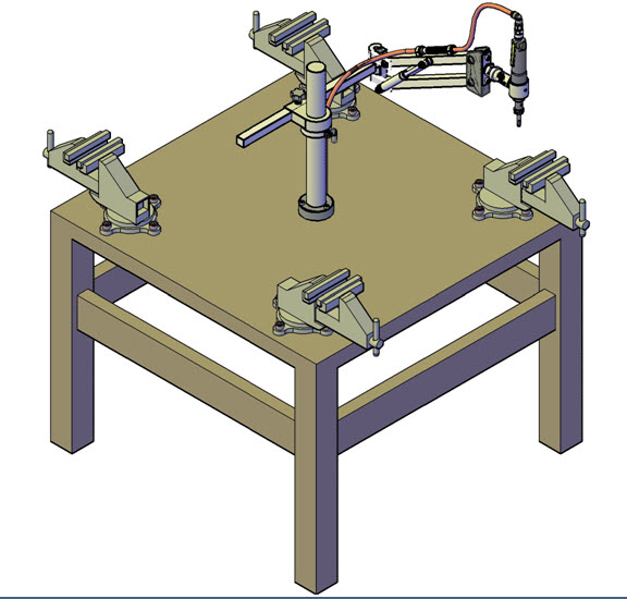 - Nhờ kết hợp hai cánh tay đòn, máy có khả năng làm việc trong bán kính 1000 mm.