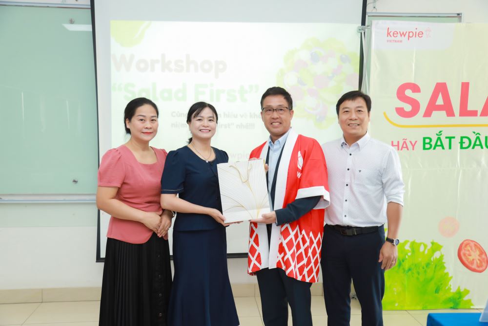 Trong không khí thân thiện và tràn đầy năng lượng, các bạn sinh viên đã được lắng nghe giới thiệu về lịch sử phát triển của Kewpie, khám phá những sản phẩm chủ lực của công ty cũng như hiểu rõ hơn về triết lý “Salad First” – một phương pháp ăn uống giúp cải thiện sức khỏe thông qua việc ưu tiên ăn rau trước bữa ăn.
