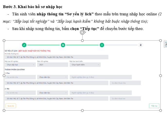 Thí sinh vui lòng đăng ký nhập học trực tuyến TẠI ĐÂY