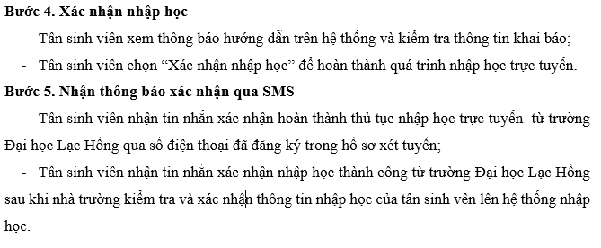 Nhằm giúp thí sinh nhanh chóng tra cứu được kết quả xét tuyển đại học. Đồng thời, đảm bảo đăng ký được đầy đủ các ưu đãi của Trường Đại học Lạc Hồng dành cho Tân sinh viên khóa 2023. Hơn thế nữa, giúp sinh viên không chỉ nhập học trực tiếp mà còn có thể nhập học trực tuyến qua hệ thống của nhà trường, nay nhà trường triển khai các hướng dẫn cụ thể như sau: