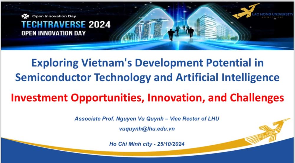 Tại hội thảo chủ đề “Tương lai Việt Nam trong kỷ nguyên công nghệ mới: Bán dẫn - Trí tuệ nhân tạo” trong khuôn khổ “Ngày đổi mới sáng tạo mở 2024” tại Thành phố Hồ Chí Minh, PGS,TS Nguyễn Vũ Quỳnh – Phó Hiệu trưởng Trường Đại học Lạc Hồng (LHU) nhấn mạnh: Mặc dù, Việt Nam là nước đi sau trong cuộc đua lĩnh vực vi mạch bán dẫn, nhưng được đánh giá là có tiềm năng to lớn và hội tụ đủ các điều kiện để nhanh chóng phát triển hệ sinh thái bán dẫn cũng như tham gia chuỗi cung ứng toàn cầu.