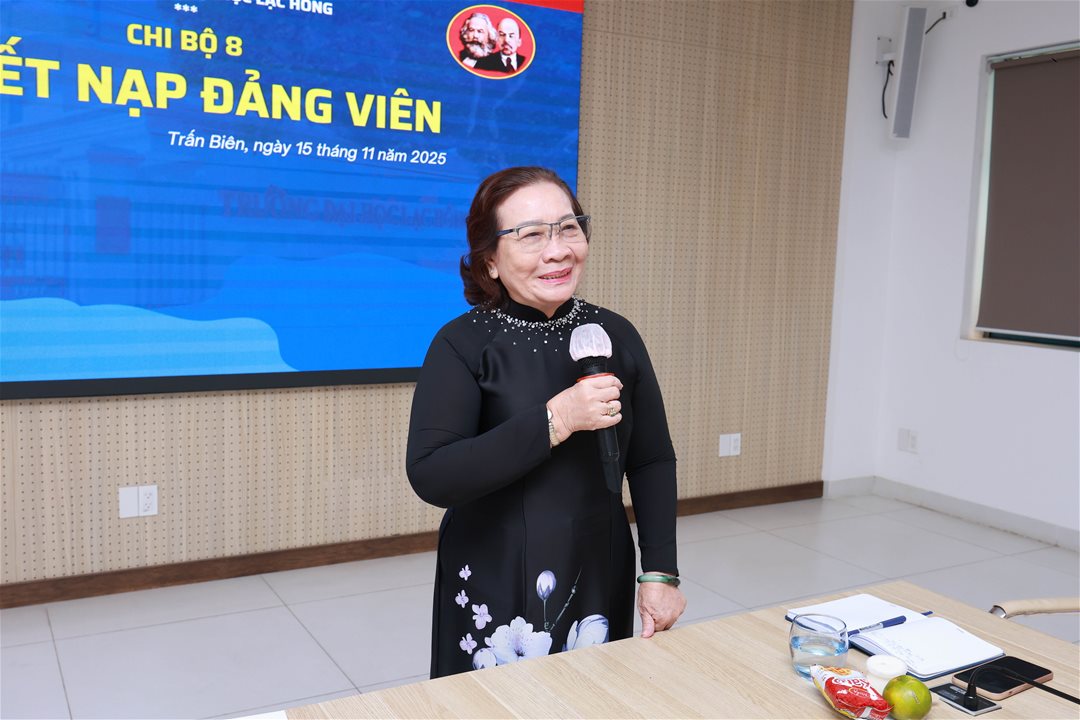 Phát biểu tại buổi lễ, đồng chí Nguyễn Thị Thu Lan – Bí thư Đảng ủy, Phó Hiệu trưởng nhà trường chúc mừng hai đoàn viên sinh viên ưu tú đã vinh dự được đứng vào hàng ngũ của Đảng Cộng sản Việt Nam. Đồng chí nhấn mạnh, đây là niềm tự hào không chỉ của cá nhân các đồng chí đảng viên mới mà còn là niềm vui chung của toàn thể Đảng bộ Trường Đại học Lạc Hồng. Chúc các đồng chí luôn giữ vững lý tưởng, phát huy tinh thần tiên phong, gương mẫu của người đảng viên trẻ; không ngừng rèn luyện, học tập và cống hiến vì sự phát triển của Nhà trường và đất nước. Đồng thời, đồng chí đề nghị các Chi bộ, Đoàn Thanh niên và Hội Sinh viên Nhà trường tiếp tục quan tâm, bồi dưỡng, tạo điều kiện để ngày càng có thêm nhiều sinh viên ưu tú được đứng vào hàng ngũ của Đảng.