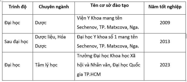 1. ИЗУЧЕНИЕ МИНЕРАЛЬНОГО СОСТАВА ЛЕКАРСТВЕННОГО РАСТИТЕЛЬНОГО СЫРЬЯ, СОДЕРЖАЩЕГО ЭФИРНЫЕ МАСЛА. 2013. Đại học Y khoa số 1 mang tên Sechenov, TP. Matxcova, Nga.