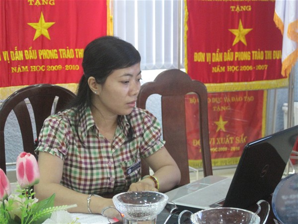 Cô Nguyễn Thị Thu Hiền- nhóm chuyên trách 1, đang góp ý tiêu chuẩn 2 và tiêu chuẩn 10...