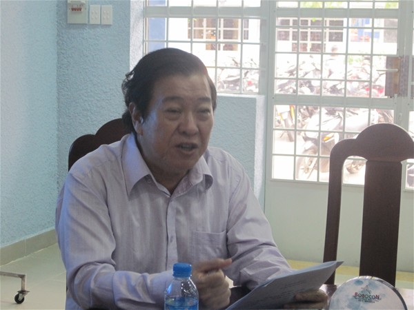 Thầy Huỳnh Cao Tuấn- Trưởng nhóm chuyên trách 9, đang góp ý tiêu chuẩn 2 và tiêu chuẩn 10...