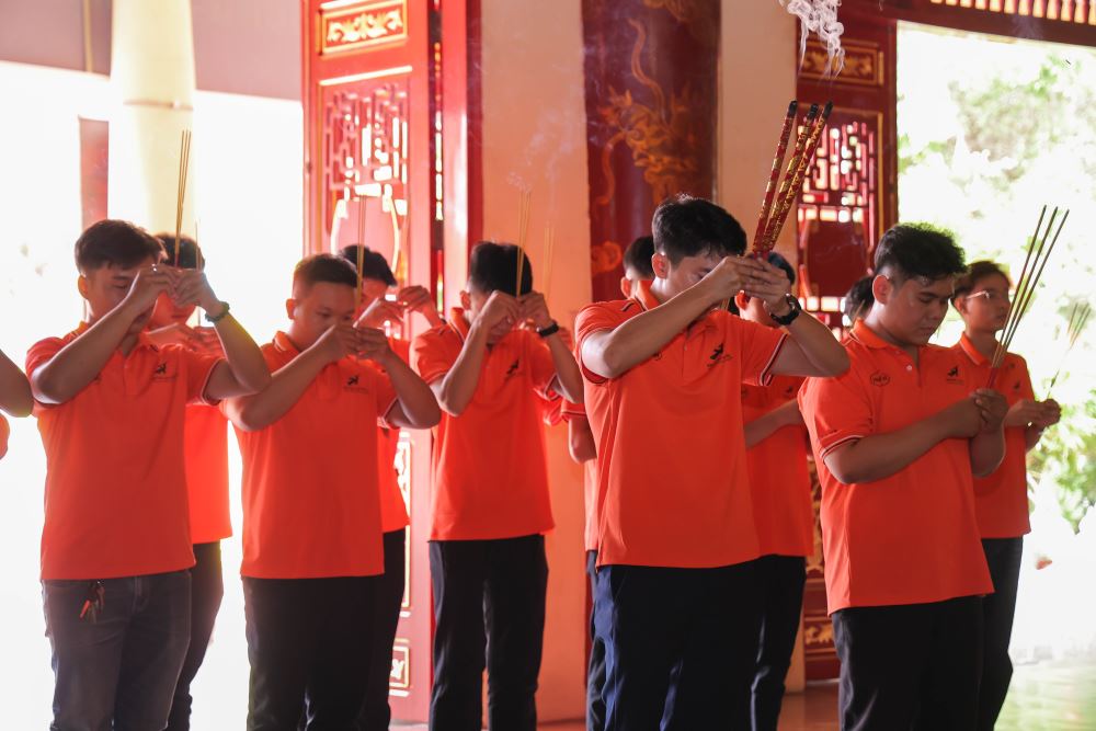 The Robocon delegation offering incense at Tran Bien Temple of Literature