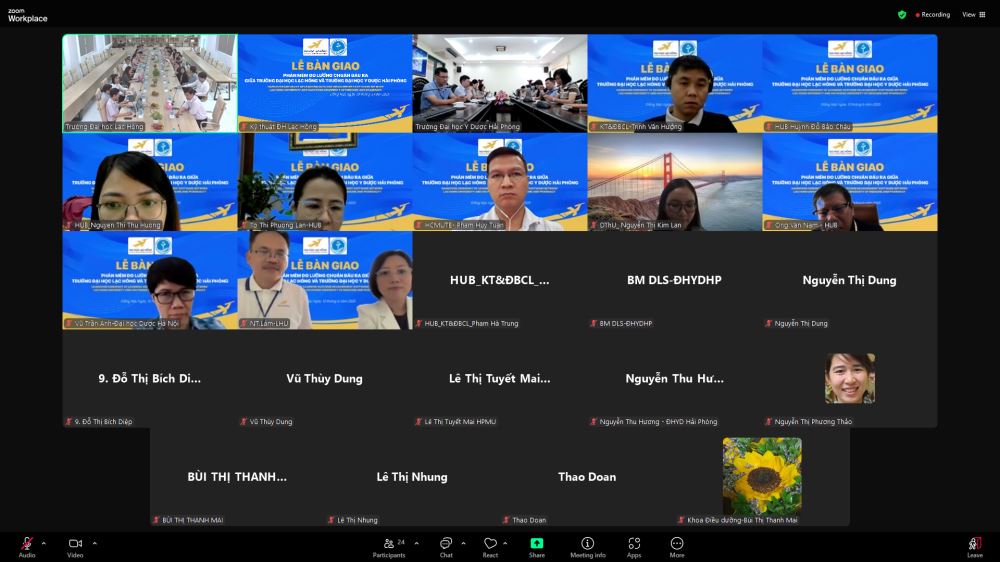 The event was attended by the Board of Rectors, leaders of various departments, and the software development team of LHU, along with representatives of the Board of Rectors and related units from Hai Phong University of Medicine and Pharmacy, and representatives from various partner universities.