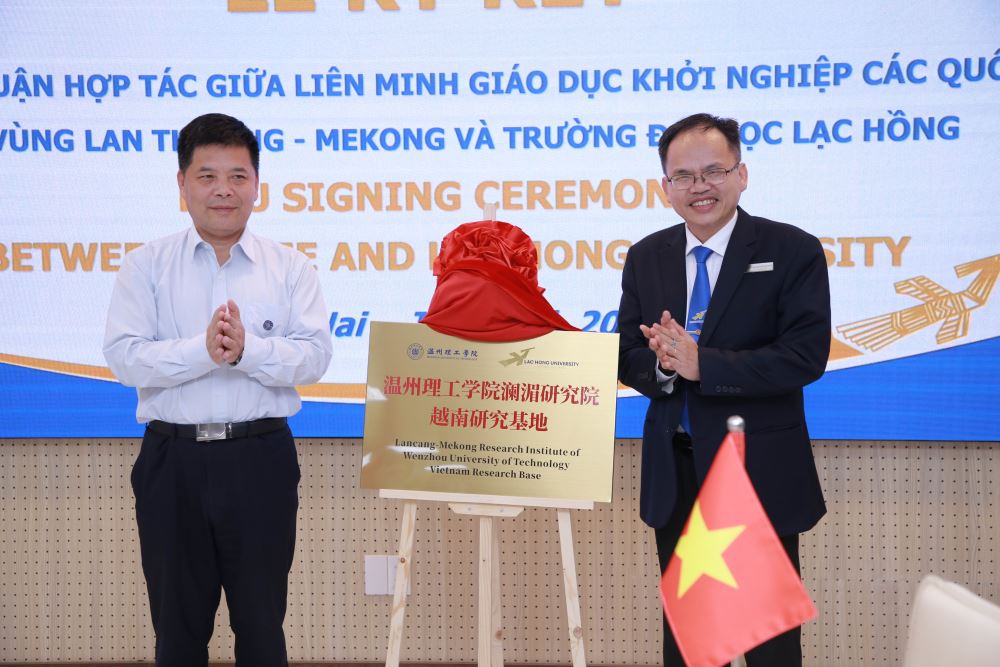 2024年6月3日上午在与温州理工大学(WZUT)澜湄国家创业教育联盟(LMCEEA)领导会面期间,我校成功举办《温州理工学院澜湄研究院越南研究基地》揭牌仪式。
