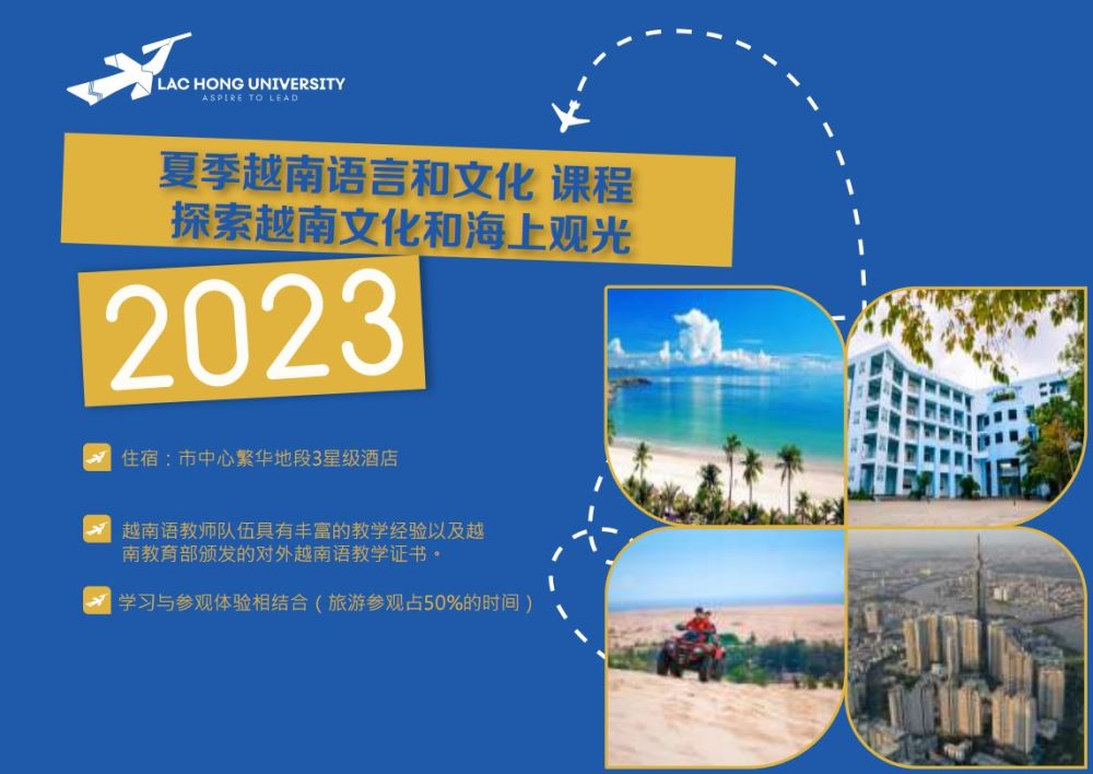 越南语言文化班 2023 年夏季 - 探索越南文化和海上观光是一个由雒鸿大学举办的、结合旅游和体验越南文化的短期学习项目。课程将语言学习、到海边以及白沙丘旅游、探索远东明珠-胡志明市的街头文化、体验越南迷人的饮食文化完美结合在一起。