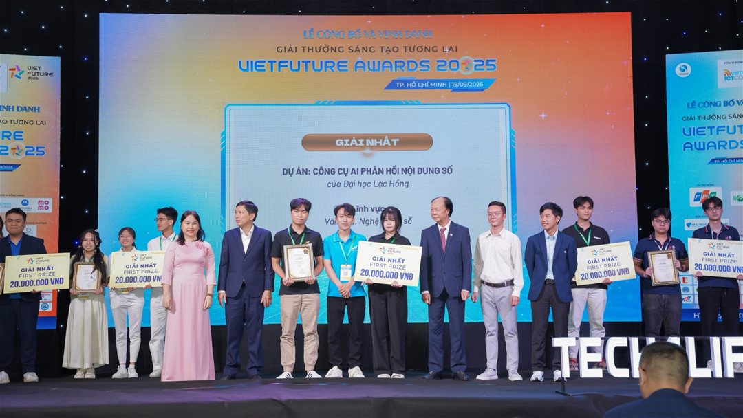 Trường Đại học Lạc Hồng đã lập nên dấu ấn đặc biệt tại VietFuture Awards 2025 khi xác lập kỷ lục với 14 đội thi, được vinh danh là đơn vị có số dự án tham gia nhiều nhất toàn quốc. Thành tích này không chỉ khẳng định vị thế tiên phong của trường trong phong trào khởi nghiệp và đổi mới sáng tạo, mà còn lan tỏa mạnh mẽ tinh thần dám nghĩ, dám làm tới toàn thể sinh viên và giảng viên của nhà trường.