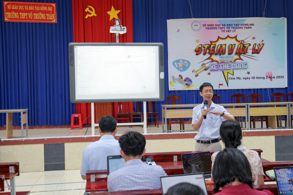 Lac Hong University (LHU) organised the training workshop "Application of Artificial Intelligence (AI) in Teaching" for teachers at Vo Truong Toan High School, located in Cam My District. The workshop, widely attended by a significant number of teachers, was facilitated by distinguished speakers from LHU, including Dr. Le Phuong Truong, Head of the Office of Educational Testing and Quality Assurance, and MSc. Ngo Dinh Hoang Diem, Deputy Head of the Office of Educational Testing and Quality Assurance.