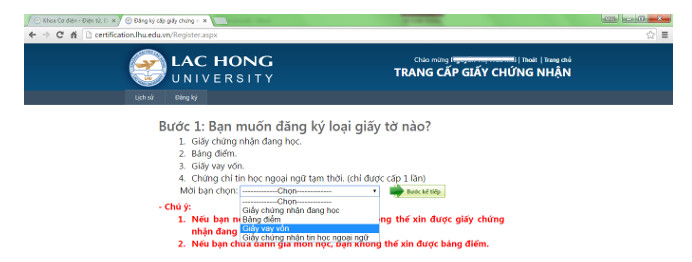 +  Cách 1: Sinh viên đăng ký trên hệ thống Me, vào mục  "Đăng ký cấp giấy chứng nhận" và làm theo hướng dẫn sau