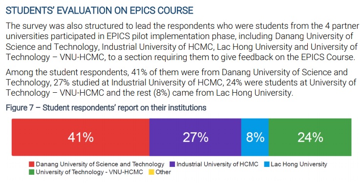 The Final EPICS Showcase Competition is used as a real-world vehicle to provide students with experience focusing their ideas, meeting deadlines, writing a business plan and presenting their ideas to the world. These skills prepare students for a competitive work environment.[https://builditvietnam.org/events/epics2018]