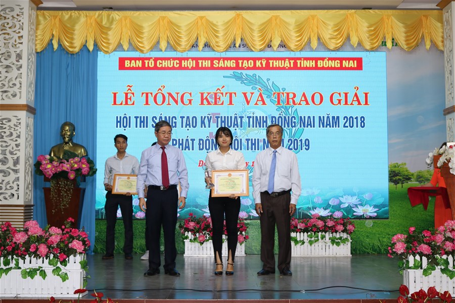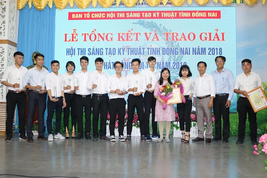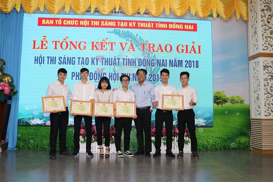 This morning of March 14, 2019, the Dongnai Union of Science and Technology Associations (DUSTA) held an award ceremony and honored scientists whose research works were rated excellent. Four solutions of the Mechatronics & Electronics Faculty were awarded, in which a second prize belongs to the authors Phan Nhu Quan, Vo Quang Thu, Le Trong Dai, Le Thi Trinh, Le Quoc Huong and Tran Minh Tung with solutions "Researching, designing and manufacturing electric wheelchairs to support disabled people"; awarding the third prize to the authors Pham Van Toan, Nguyen Van Trung, Nguyen Cuong Phi, Nguyen Duc Khuyen, Nguyen Huu Hung, Ha Duy Canh, Le Van Dai, Tran Trong Tin, Huynh Thi Thuy Trang and Luong Tran Anh Dung with the solution "Researching, designing and manufacturing automatic logo printing and drying system"; and 2 consolation prizes belonging to two groups of authors Dao Trung Kien, Nguyen Bang Phi, Le Dung Nguyen and Nguyen Luong Thanh Phong with the solution "Automatic confectionery machine", and authors Pham Van Toan, Nguyen Huu Hung, Ha Duy Canh, Le Van Dai, Tran Trong Tin, Nguyen Van Son, Phan Xuan Dung and Luong Tran Anh Dung with the solution "Researching, designing and manufacturing PE wrap V paper machine".