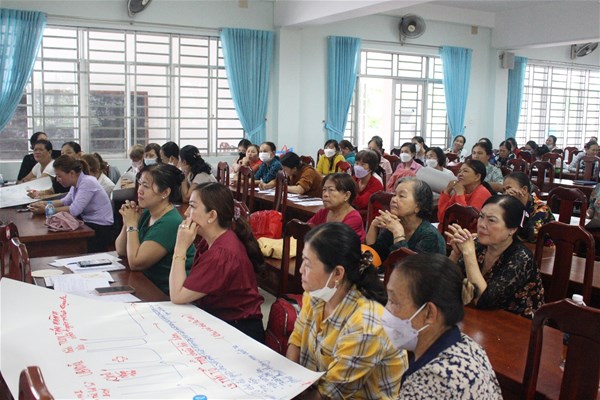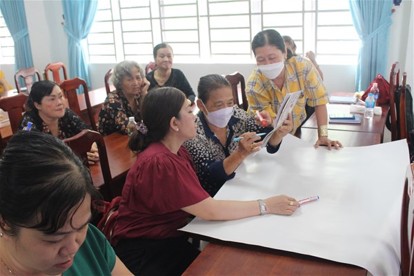 Khi nào phụ nữ cảm thấy hạnh phúc? Những nguyên nhân nào khiến khởi nghiệp bị thất bại, các bước khởi nghiệp, hệ sinh thái khởi nghiệp và cách chúng ta tiếp cận với khởi nghiệp, cách sử dụng bản đồ công cộng, nhìn ra được sự cần thiết, nhu cầu của xã hội, tìm ra những phương pháp, những đổi mới phù hợp với thị trường…. Những câu hỏi, những nội dung lần lượt được thầy TS. Nguyễn Văn Tân chia sẻ một cách cụ thể, chi tiết. Không chỉ chia sẻ bằng lý thuyết, các chị em phụ nữ được trải nghiệm với phương pháp học lý giải, trình bày thông qua sơ đồ xã, nơi mình cư trú, được thể hiện trên giấy A0, các chị em cùng nhau làm việc nhóm, thảo luận sau đó trình bày các tuyến đường, định vị các cửa hàng, trình bày nguyện vọng, cũng như có những đề suất cho các thiếu sót ở xã mình, định hướng phát triển trong tương lai.