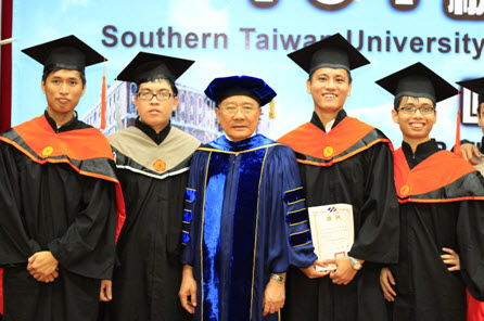 Cùng chụp hình lưu niệm với hiệu trưởng trường ĐHCN Nam Đài trong buổi lễ tốt nghiệp
