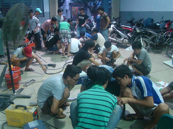 Sau buổi báo các ý tưởng robot không khí tại trung tâm công nghệ robot lúc nào cũng nhộn nhịp. Trong đội của mình các bạn được chỉ đạo viên định hướng theo sự đam mê về cơ khí, mạch điện và lập trình hoặc có thể đảm nhận qua các buổi hướng dẫn.