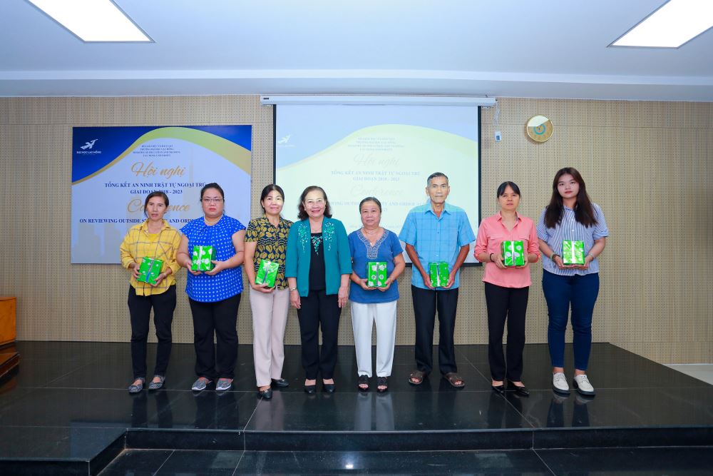 Bên cạnh đó, Nhà trường tặng quà cảm ơn và khen thưởng cho các đơn vị, các chủ nhà trọ văn minh đã có phối hợp, hỗ trợ công tác đảm bảo ANTT ngoại trú giai đoạn 2018-2023.
