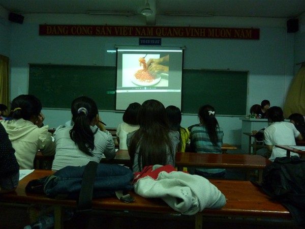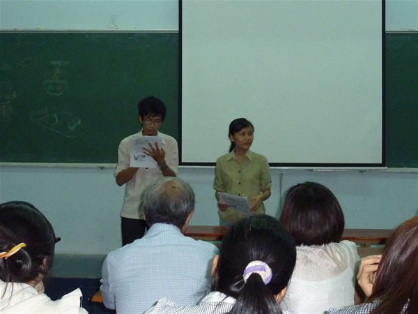 (08DN114) Kieu My さんと (09DN112) Hoang Huynh さんは本期のテーマについて紹介している