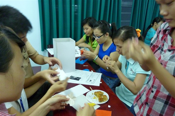 Mọi người đã cùng nhau thảo luận, cùng nhau tham gia trò chơi "Làm lồng đèn Trung Thu" và nhận quà từ BTC.