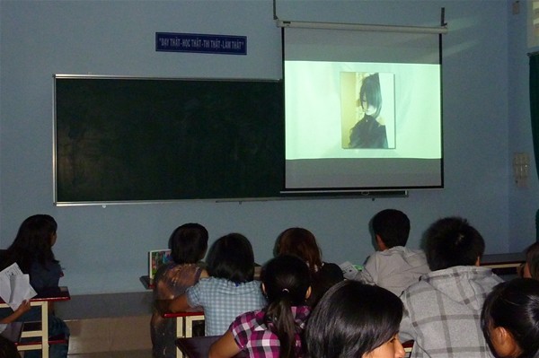 Ha bạn Thu Vân và Thu Hường 09DN111 đang giới thiệu một số thể loại tiêu biểu của Nhật Bản và Việt Nam