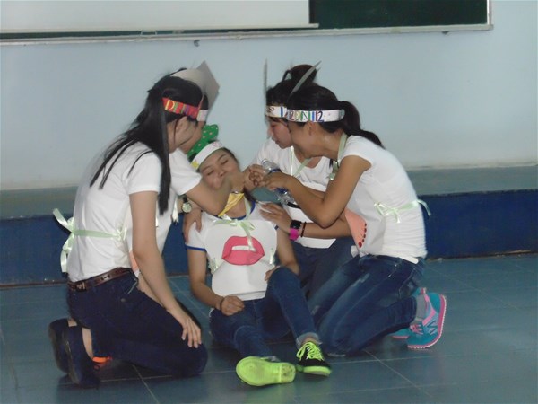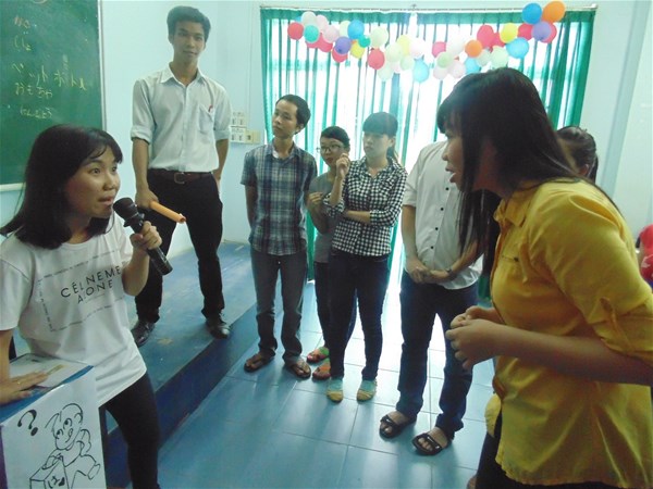 4. Vui học từ vựng tiếng Nhật: Đây là phần rất sôi nổi, thu hút đông đảo sinh viên tham gia. Thông qua trò chơi, sinh viên có cơ hội vận dụng vốn từ vựng đã học để diễn đạt sao cho các thành viên trong đội của mình có thể đưa ra một từ chỉ vật, một tính từ hay một động từ một cách chính xác.