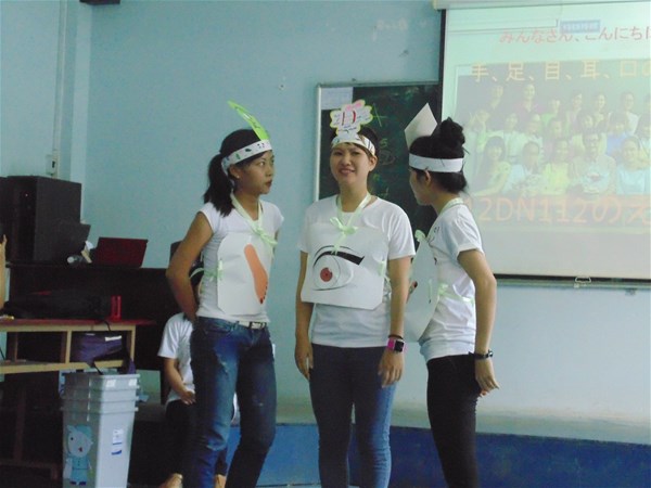 1. Diễn kịch bằng tiếng Nhật: “Tai, mắt, mũi, miệng, tay, chân”. Đây là vở kịch được sinh viên năm thứ 2, ngành Nhật Bản học dàn dựng dựa trên câu chuyện ngụ ngôn Việt Nam nói về sự đoàn kết. Vở kịch đã thu hút sự quan tâm theo dõi của tất cả các thành viên tham dự và để lại một ấn tượng khó quên trong lòng người xem. Để có thể ra mắt trong buổi sinh hoạt Câu lạc bộ lần này, tập thể lớp 12DN112 đã cố gắng rất nhiều từ khâu chuyển dịch lời thoại sang tiếng Nhật, thiết kế trang phục, diễn tập...