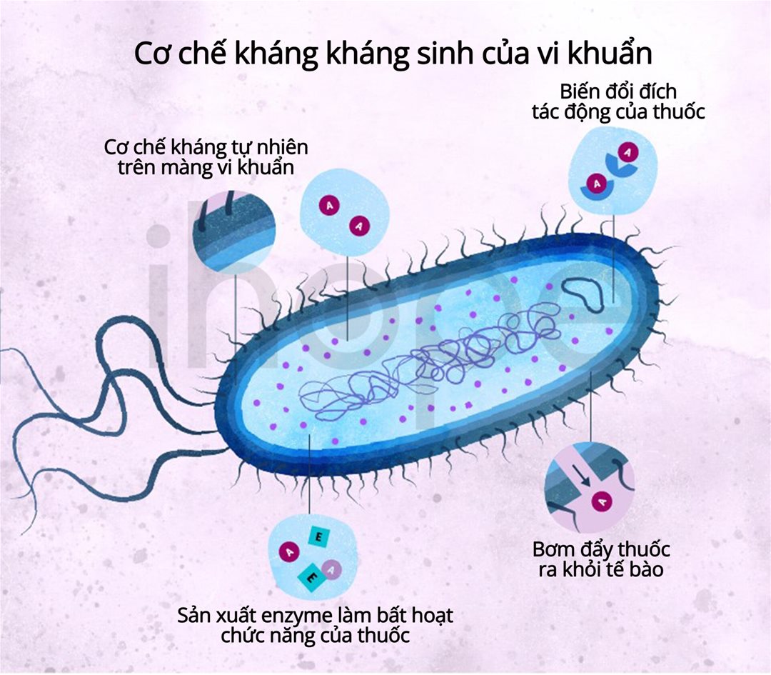 Hình 1. Cơ chế đề kháng kháng sinh của vi khuẩn