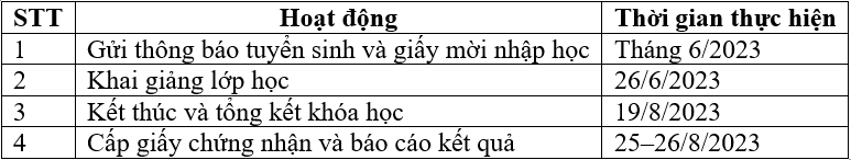 • Thời gian học: Từ 26/6/2023 đến 19/8/2023