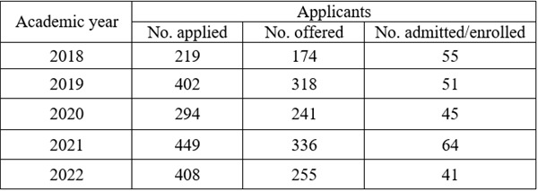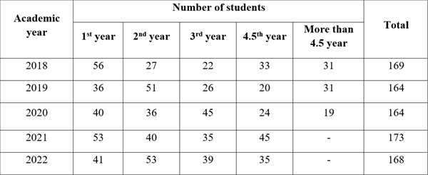 Table 2. The number of students in last 5 academic years