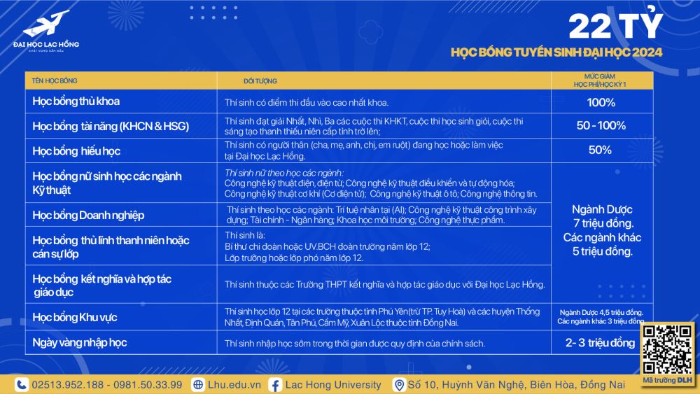 => Còn chần chừ gì không đăng ký xét tuyển đại học TẠI ĐÂY để nhận ngay những ưu đãi cực kỳ hấp dẫn tại Đại học Lạc Hồng.