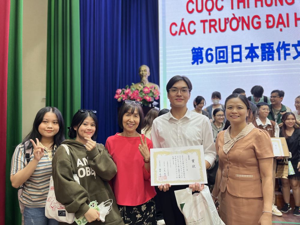 100を超えるエントリーの中から、20DN112のクラスのLe Quang Huy(レ・クァン・フィ)が見事に最終ラウンドに進出し、コンソレーション賞を獲得しました。 これは、ラクホン大学全般、特に日本学科の誇りであり励みになる成果です。 Le Quang Huy(レ・クァン・フィ) は優れた学業成績を保持し、常々日本のアカデミック クラブや専門の大会へ挑戦し続けています。 この大会は単なる意見披露の場であるだけでなく、日本語を学ぶ学生が日本の土壌で明るい未来に向かって学び、知識を向上し、より多くの意欲を保持し続けるための足がかりでもあります。