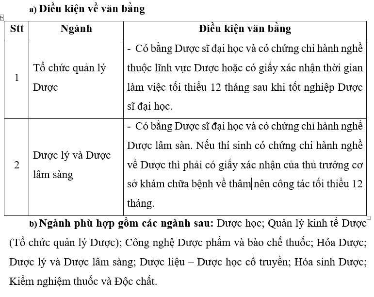 2. Điều kiện dự tuyển trình độ chuyên khoa 1