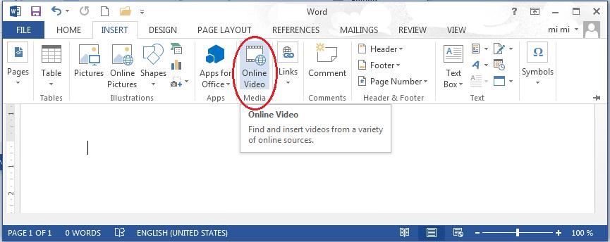 Để chèn một video vào tập tin Microsoft Word bạn thực hiện theo các bước sau: