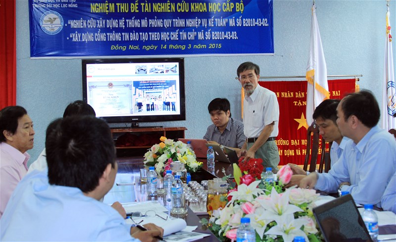 LHU has excellently passed the acceptance test for two ministerial-level science and technology topics. The acceptance test recently took place at the weekend at Campus 1- LHU. Here, the two topics were namely "Building a training portal under credit system" led by People's Teacher Dr. Do Huu Tai - Chairman of the Trustees Board, Rector and the topic "Research on a simulation system in accounting professional process" led by Assoc. Prof. Dr. Tran Van Lang - Dean of the Faculty of Information Technology.