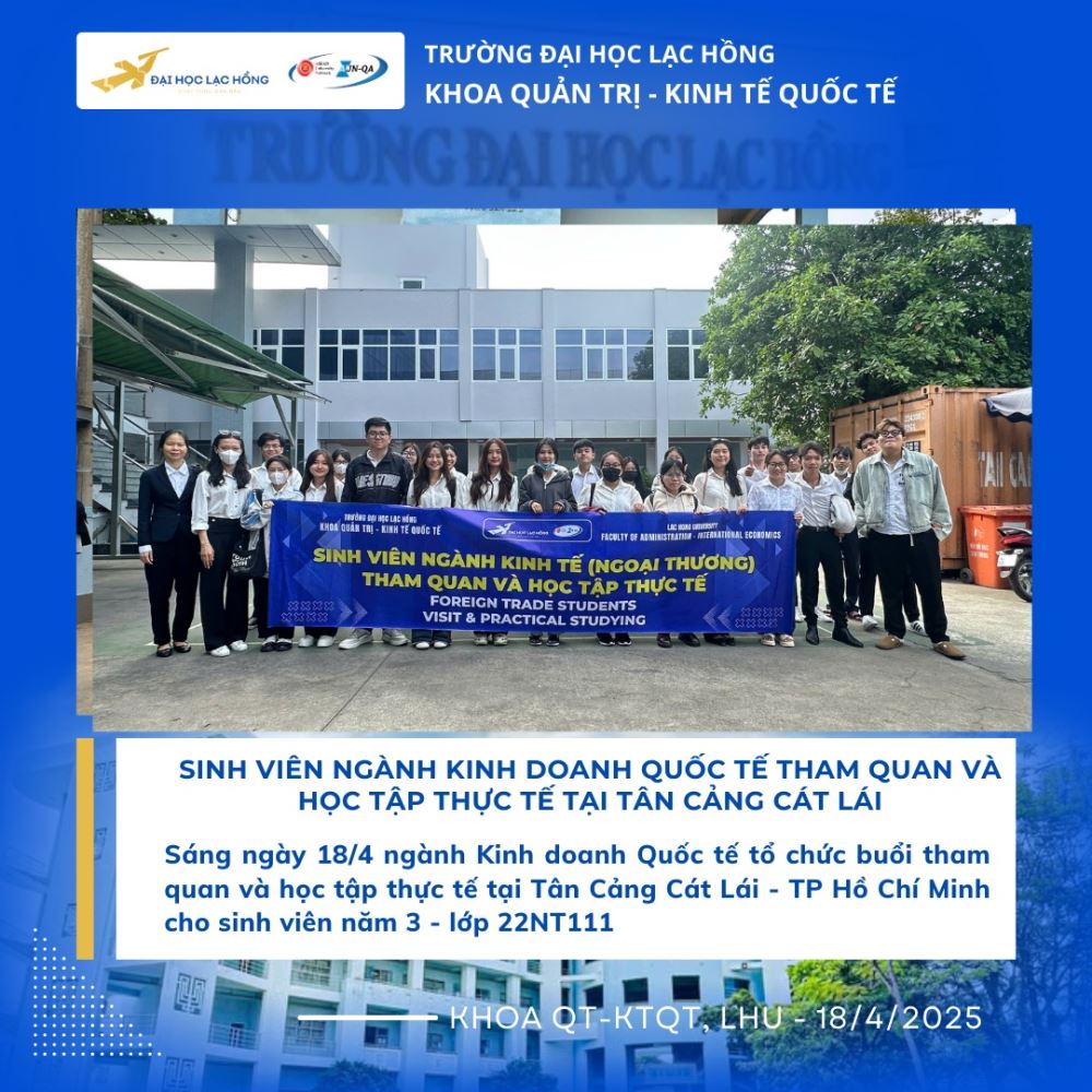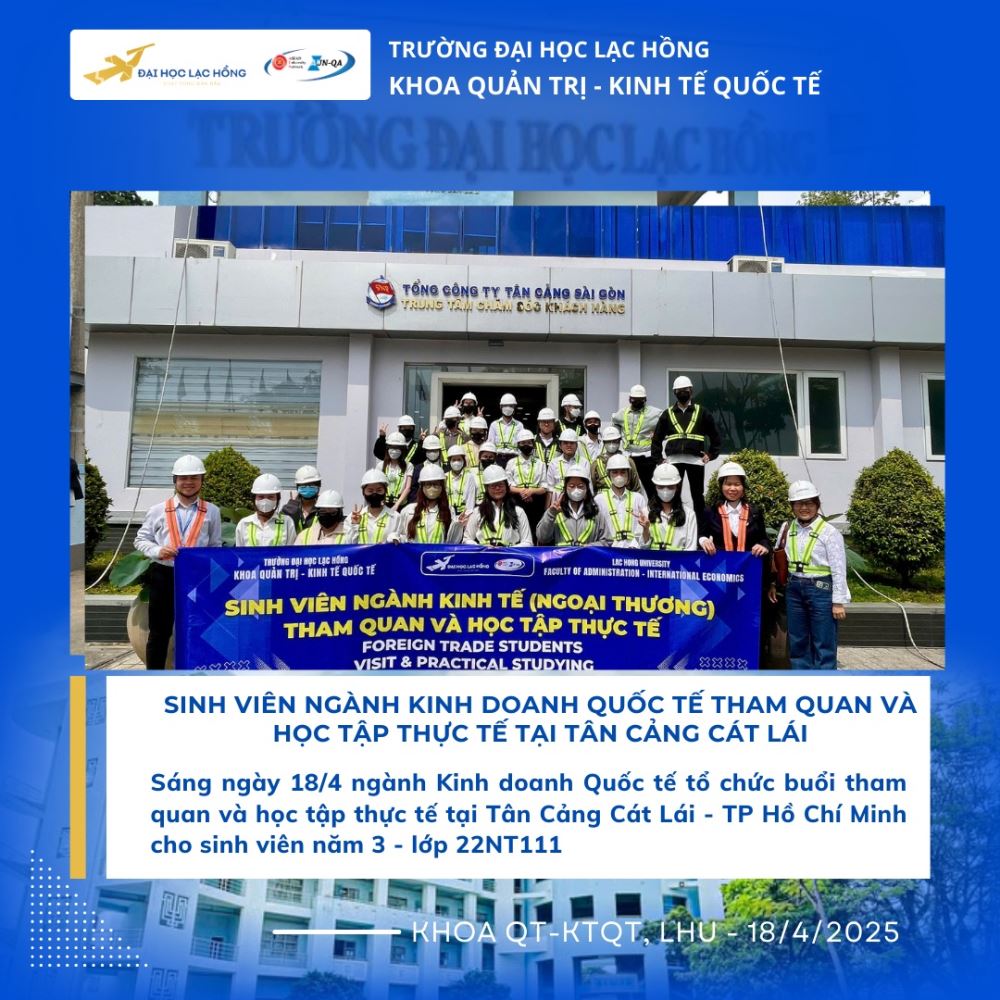 On April 18, students of the International Business program at Lac Hong University had the opportunity to participate in a field trip and practical learning session at Tan Cang Cat Lai, one of the most important seaports in Vietnam. The visit was organized to provide students with in-depth insights into transportation processes, logistics operations, and international trade activities that take place daily at the port.