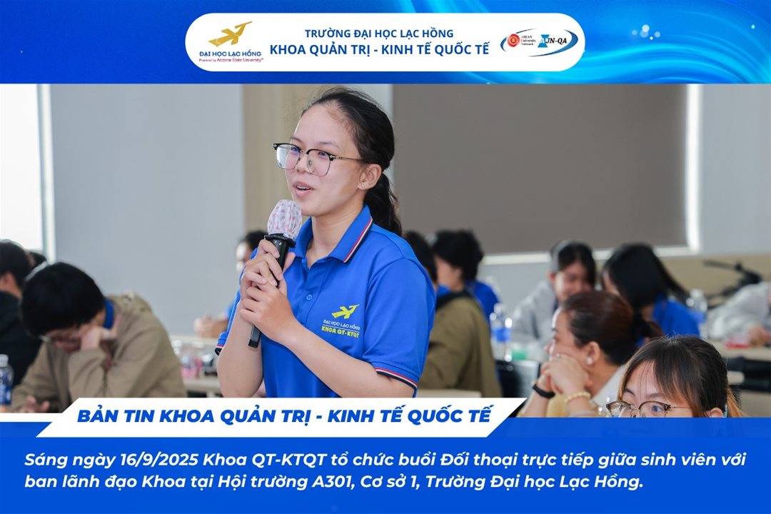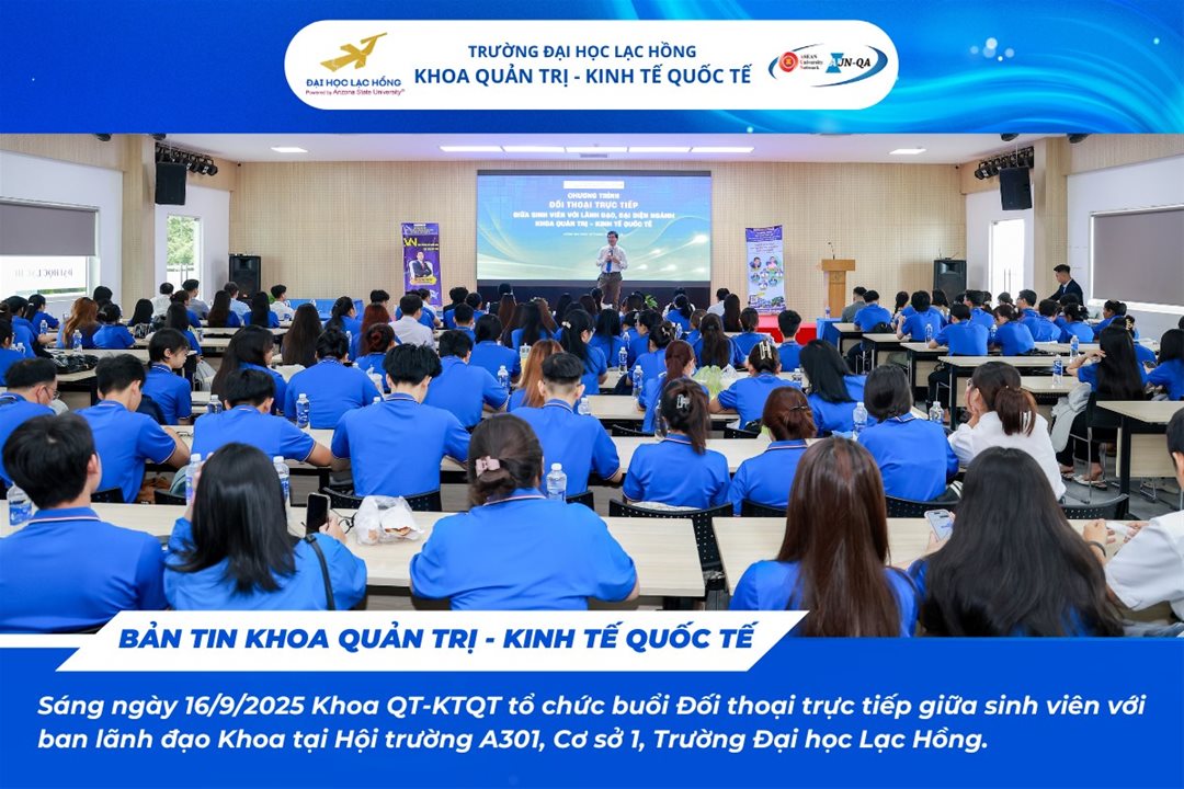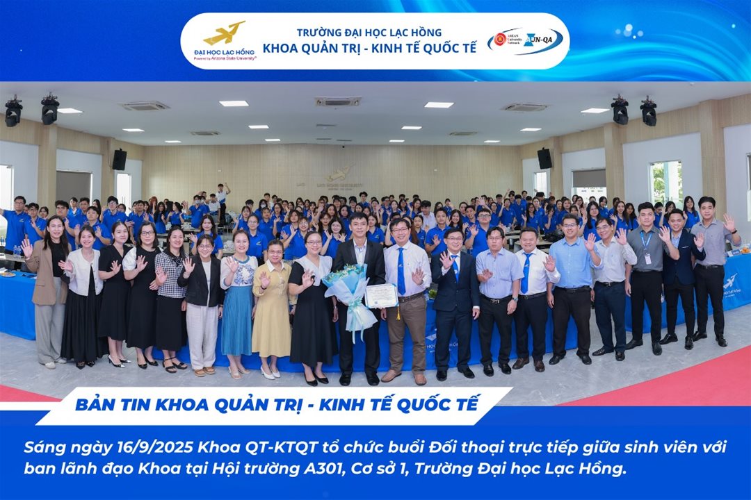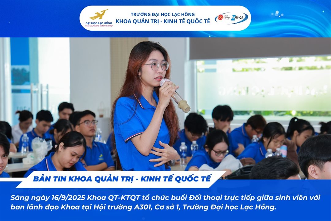 On the morning of 16 September 2025, at Hall A301 – Campus 1, Lac Hong University, The Faculty of Administration International Economics organized the program “Direct Dialogue between Students and the Faculty Leadership for the Academic Year 2025–2026.”
