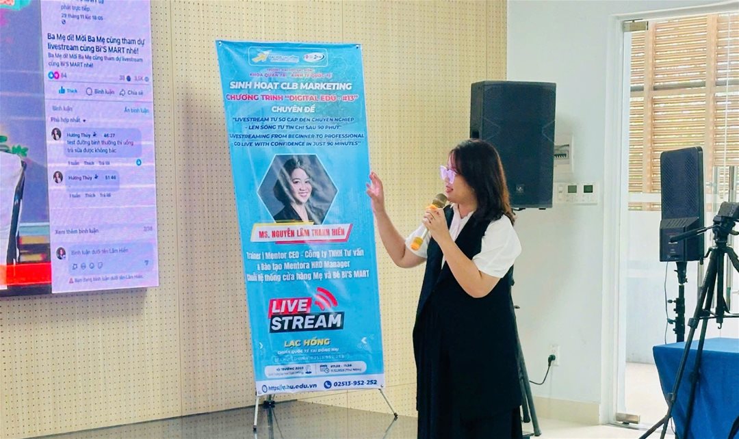 On the morning of 11 December 2025, at Room B203 – Campus 1 – Lac Hong University, the Marketing Club of The Faculty of Administration International Economics organized a thematic session entitled “Livestream from Basic to Professional – Go Live Confidently in Just 90 Minutes.” The program attracted a large number of students interested in Marketing, communication, and digital content creation.