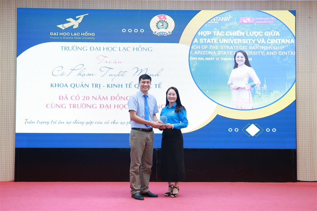 In response to the Teacher and Staff Appreciation activities of Lac Hong University, The Faculty of Administration International Economics (FAIE) respectfully congratulates lecturers who have been awarded the title of Outstanding Trade Union Member and those with long-standing service. This occasion serves as an opportunity for the Faculty to acknowledge the meaningful contributions of its leadership, lecturers, and staff to the overall development of the unit.
