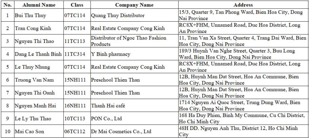 List of Enterprises Owned by FiBa Alumni