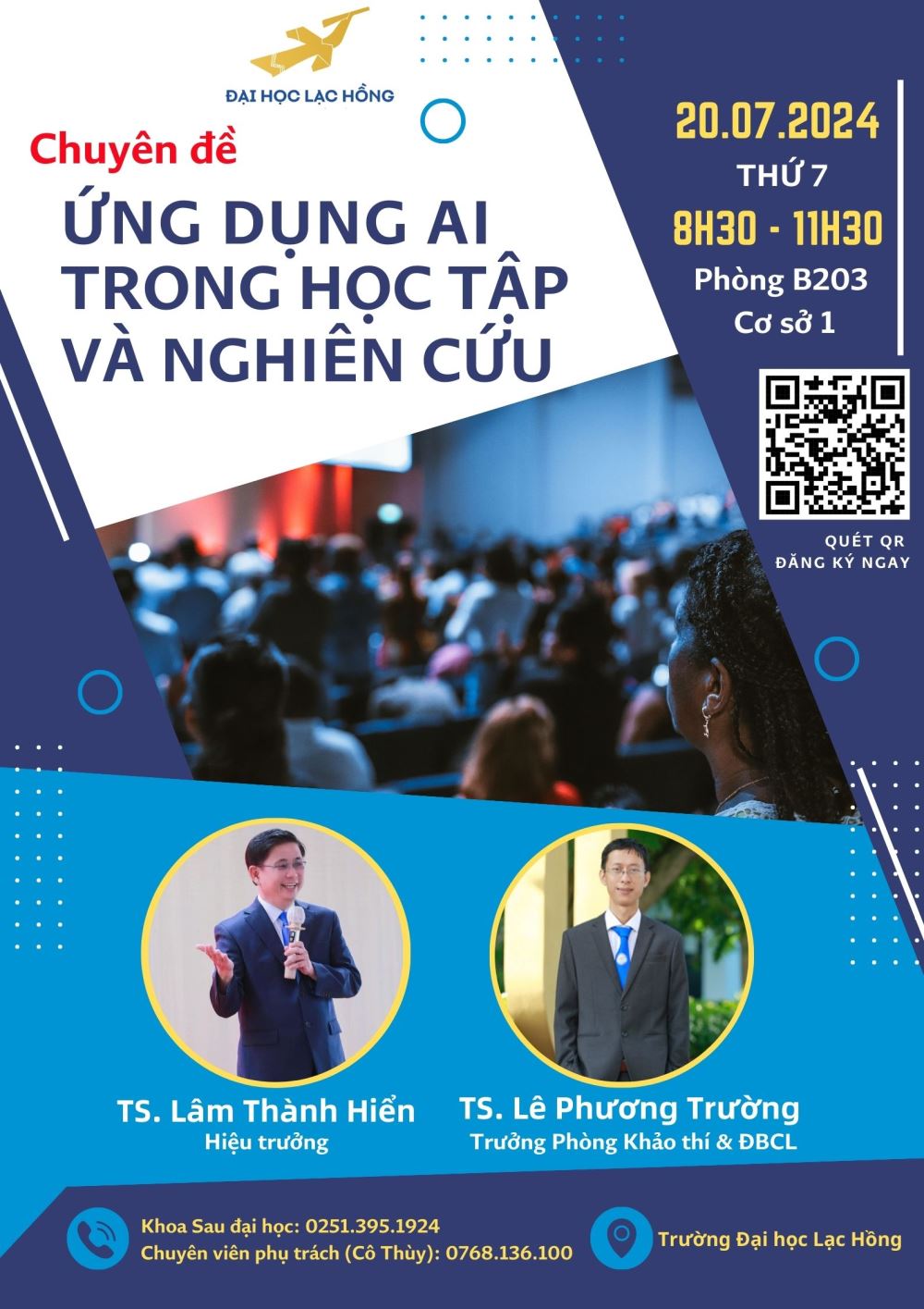 In the context of the rapidly evolving Fourth Industrial Revolution, Artificial Intelligence (AI) has become a key tool in many fields—especially in education and scientific research. This seminar aims to provide lecturers, researchers, and students with comprehensive knowledge and understanding of AI applications in learning and research, contributing to improved education quality and research effectiveness at Lac Hong University.
