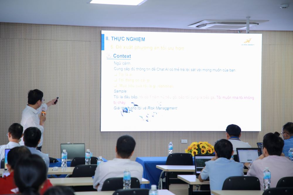 In alignment with Lac Hong University’s mission of education, applied scientific research, technology transfer, and community service to meet societal needs, on the morning of July 20, 2024, at Room B203, Campus 1 of Lac Hong University, a thematic seminar titled “Applications of AI in Learning and Research” was held.