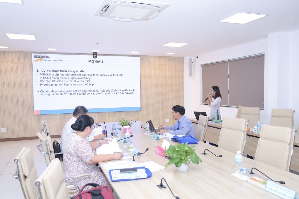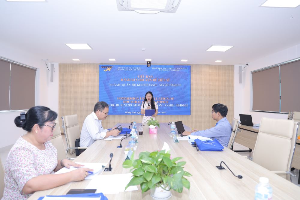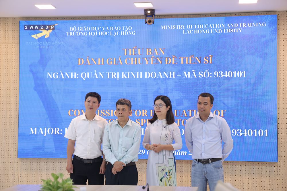 On March 29, 2025, at the meeting room of Campus 1 of Lac Hong University (LHU), four doctoral candidates in Business Administration—Le Viet Anh, Dinh Van Quang, Ngo Chi Tam, and Phan Kim Tuyen—successfully completed their doctoral dissertation topic evaluation.