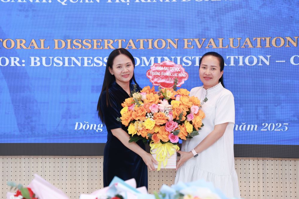 In a moment of joy and emotion, Duong Thi Phuong Hanh expressed her deep gratitude for the guidance and dedicated support of her academic supervisors, extended thanks to the evaluation committee, and acknowledged the care and support from the leadership of Lac Hong University, colleagues, friends, and especially her family—who have been a great source of encouragement and motivation, enabling her to successfully complete and defend her doctoral dissertation.